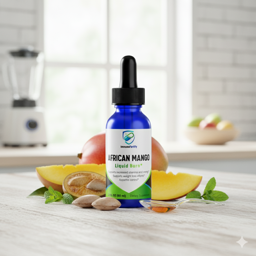 Experience the natural power of ImmunoFortify AFRICAN MANGO Liquid Burn! This dynamic dietary supplement is formulated to support your weight loss efforts by helping with appetite control and boosting your stamina and energy. Each 2 FL OZ (60 ml) bottle delivers a potent liquid blend designed for rapid absorption and effectiveness. Harness the benefits of African Mango in a convenient liquid form to accelerate your journey to a leaner, more energetic you. ImmunoFortify AFRICAN MANGO Liquid Burn – your natural advantage for weight management.
