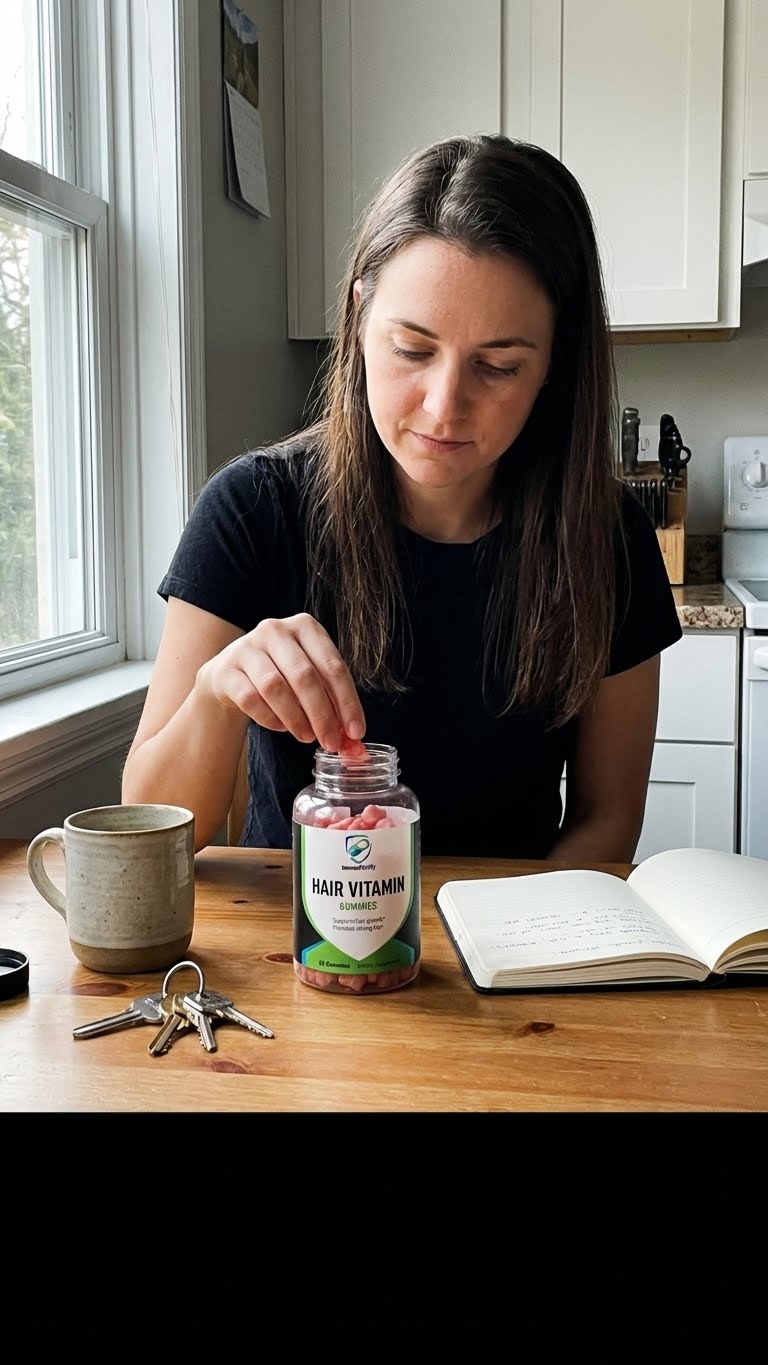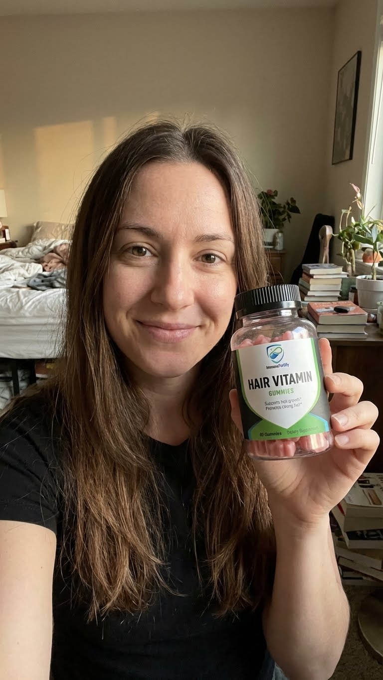 ImmunoFortify Hair Vitamin Gummies are a daily dietary supplement made with Biotin, essential vitamins, and minerals designed to support overall hair wellness as part of a balanced routine.