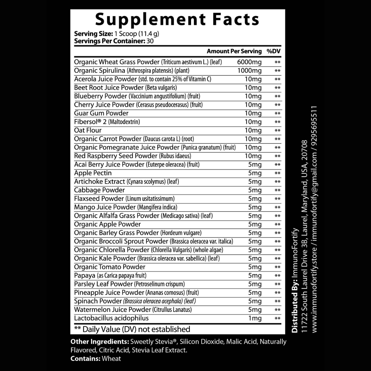 Elevate your wellness routine with ImmunoFortify's Organic Greens in a refreshing Strawberry Watermelon flavor! This premium dietary supplement is packed with a powerful blend of organic greens, superfoods, and antioxidants, designed to nourish your body from the inside out. Enjoy improved energy levels, enhanced detoxification, and robust immune support with every delicious serving. We've expertly combined nutrient-rich ingredients to support healthy digestion, balance pH levels, and provide a comprehensive spectrum of vitamins and minerals. Say goodbye to the earthy taste often associated with greens supplements – our delightful Strawberry Watermelon flavor makes taking your daily greens a truly enjoyable experience. Mix easily with water or your favorite smoothie for a quick, convenient, and incredibly beneficial boost to your day. Feel vibrant, refreshed, and naturally fortified with ImmunoFortify Organic Greens!