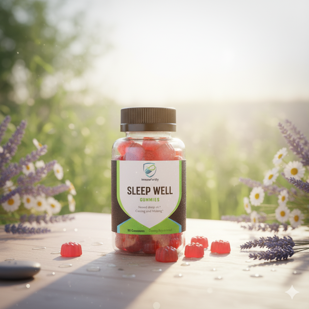 Discover the serene sleep you deserve with ImmunoFortify's Sleep Well Gummies. Crafted as a natural sleep aid, these delicious gummies are designed to help you gently unwind and drift into a peaceful slumber. Infused with calming and relaxing ingredients, they work to soothe your mind and body, making it easier to fall asleep faster and enjoy a deeper, more restorative rest. No more tossing and turning or waking up groggy; our Sleep Well Gummies support a healthy sleep cycle, ensuring you awaken feeling refreshed, revitalized, and ready to tackle your day. With 60 delightful gummies per bottle, establishing a consistent and beneficial sleep routine has never been easier or tastier. Make ImmunoFortify Sleep Well Gummies your nightly ritual for tranquility and optimal well-being. Sleep well, live better!